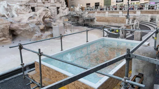 Πρόκειται για μια «λύση ανάγκης» του υπουργείου Πολιτισμού, που σκοπό έχει να ικανοποιήσει τις απαιτήσεις των τουριστών, χωρίς να διακόψει τον καθαρισμό του ιστορικού σιντριβανιού, που βρίσκεται στο κέντρο της Αιώνιας Πόλης.