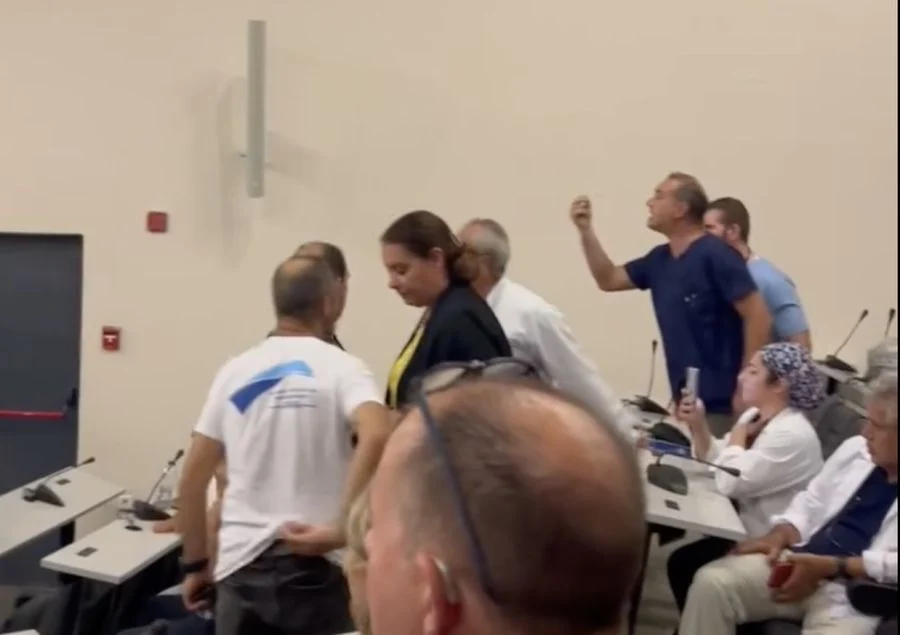 Η ένταση κορυφώθηκε μετά τη δήλωση Γεωργιάδη ότι οι γιατροί «έκλεισαν το νοσοκομείο», ενώ γιατροί που εξέφρασαν την έντονη διαμαρτυρία τους απομακρύνθηκαν από την αίθουσα από σεκιουριτάδες!
