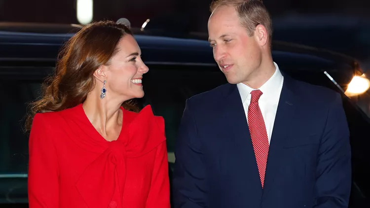Η δούκισσα του Cambridge επέλεξε ένα κόκκινο Catherine Walker φόρεμα με ένα φιόγκο στο μπούστο που συνδύασε με ένα ζευγάρι διαμαντένια σκουλαρία με ζαφείρια που επέλεξε από την κολεξιόν της βασιλομήτωρ Ελισάβετ. Τα σκουλαρίκια τύπου art deco άνηκαν στη μητέρα της βασίλισσας Ελισάβετ που είχε φύγει σε ηλικία 101 ετών το 2002.