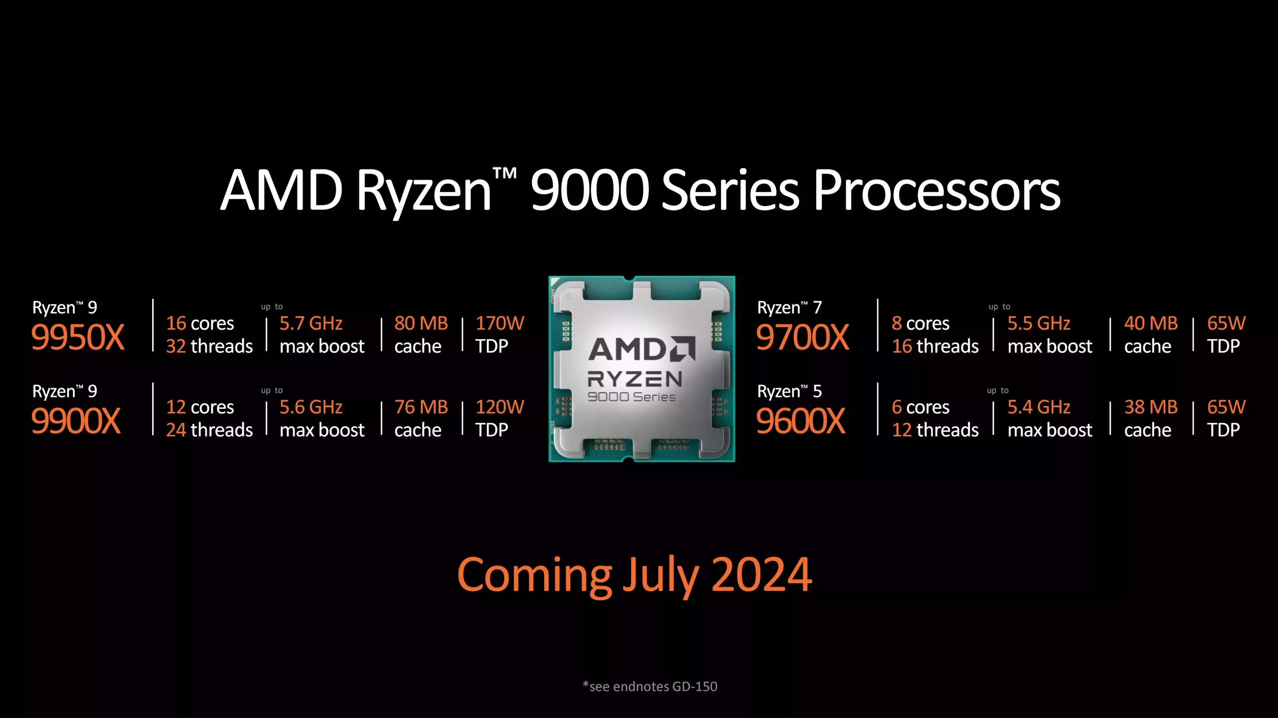 Οι νέοι επεξεργαστές Zen 5 Ryzen 9000 της AMD είναι προ των πυλών και σήμερα μπορούμε να αποκαλύψουμε λίγες περισσότερες πληροφορίες για αυτούς. Ως μια γρήγορη ανακεφαλαίωση, η AMD ανακοίνωσε τη σειρά Ryzen 9000 στην Computex τον περασμένο μήνα. Αυτό περιλαμβάνει τέσσερις κύριους επιτραπέζιους επεξεργαστές σε μια αρκετά τυπική σειρά: τους Ryzen 9 9950X, Ryzen 9 9900X, Ryzen 7 9700X και Ryzen 5 9600X.