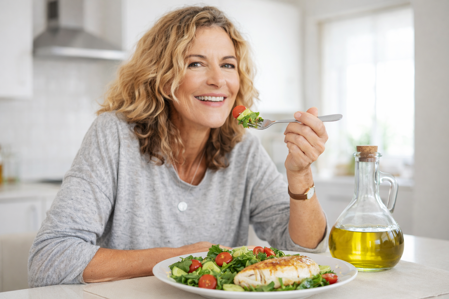 Η εμμηνόπαυση είναι φυσιολογική μετάβαση. Μια Μεσογειακή, πλούσια σε ασβέστιο, βιταμίνη D, πρωτεΐνη και καλά λιπαρά διατροφή, μαζί με άσκηση και επαρκή ύπνο, μπορεί να μειώσει συμπτώματα και να προστατεύσει μακροπρόθεσμα την υγεία. Πριν από οποιοδήποτε συμπλήρωμα, προηγείται ιατρική αξιολόγηση και εξατομίκευση.